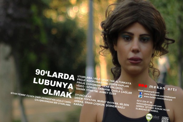 Mekan Artı, geçtiğimiz sene sahnelediği “80’lerde Lubunya Olmak’ oyunuyla, Türkiye’de şimdiye dek görülmemiş bir şekilde yaşamını sürdüren ‘eş cinsel’ bireylerin yaşantısına ayna tuttu. Aslında ‘görülmemiş’ yerine, ‘kendilerini özgürce ifade etmekten korkan insanların görünmek istememeleri’ demeli. 80’lerin karmaşık siyasi çalkantıları içinde, darbeciler tarafından adeta soykırıma uğrayan insanların acıları yine aynı grup tarafından 90’larda ‘toplumda biz de varız’ sloganına nasıl dönüşüyor, farklı bir tarzda izliyoruz. “90’larda Lubunya Olmak” metnini ‘Siyah Pembe Üçgen Derneği İzmir Şubesi’ yazmış, Ufuk Tan Altunkaya yazılan metni sahneye uyarlamış ve yönetmiş. 80’lerde anlatılan konunun aksine, bu kez sahneyi farklı bir algıyla donatan Altunkaya, kendi teatral çizgisinin dışına çıkarak iki perdelik gösteriyi çarpıcı karelerle seyircisine sunuyor.