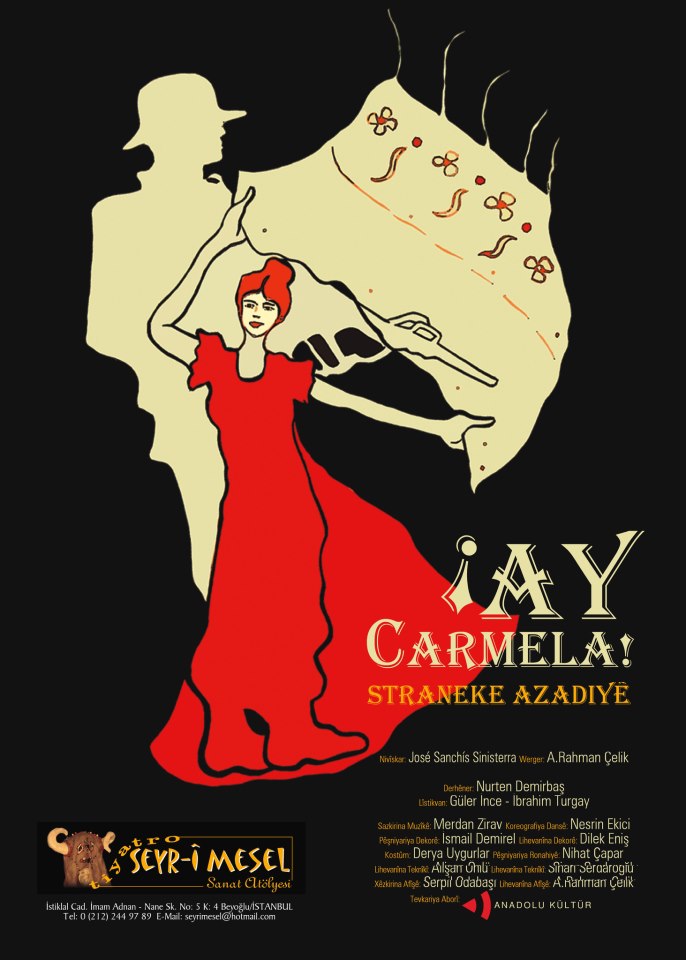 ‘Carmela’ rolünde Güler İnce’ nin rol psikolojisini doğru çözümlemiş olması, ayrıca uzun zamandır sahnede oynadığı karakterin ‘karşı duruşunu’ çok iyi tespit etmesi konunun akıp gitmesinde önemli bir etki. Son sahneye kadar inanılmaz bir performansla, az sonra neler olacağını hissettiren oyuncu, oynadığı rolün ağırlığını rahatlıkla kaldırmış. ‘Paulino’da İbrahim Turgay, ölüm korkusu karşısında inanmadığı bir eylemi gerçekleştiren, geçmişinden pişmanlıklar duyan bir insanı canlandırmış. Şarkıların, dansların olduğu bölümlerde, ölüme doğru akıp giden trajik öykünün içinde harikulade bir iş çıkarmış. Sahnede iki kişilik dev bir ekip var. İki perde süren oyunun can alıcı noktası ise, faşizme karşı boyun eğmeyen ‘Carmela’ nın ölüm sahnesi!