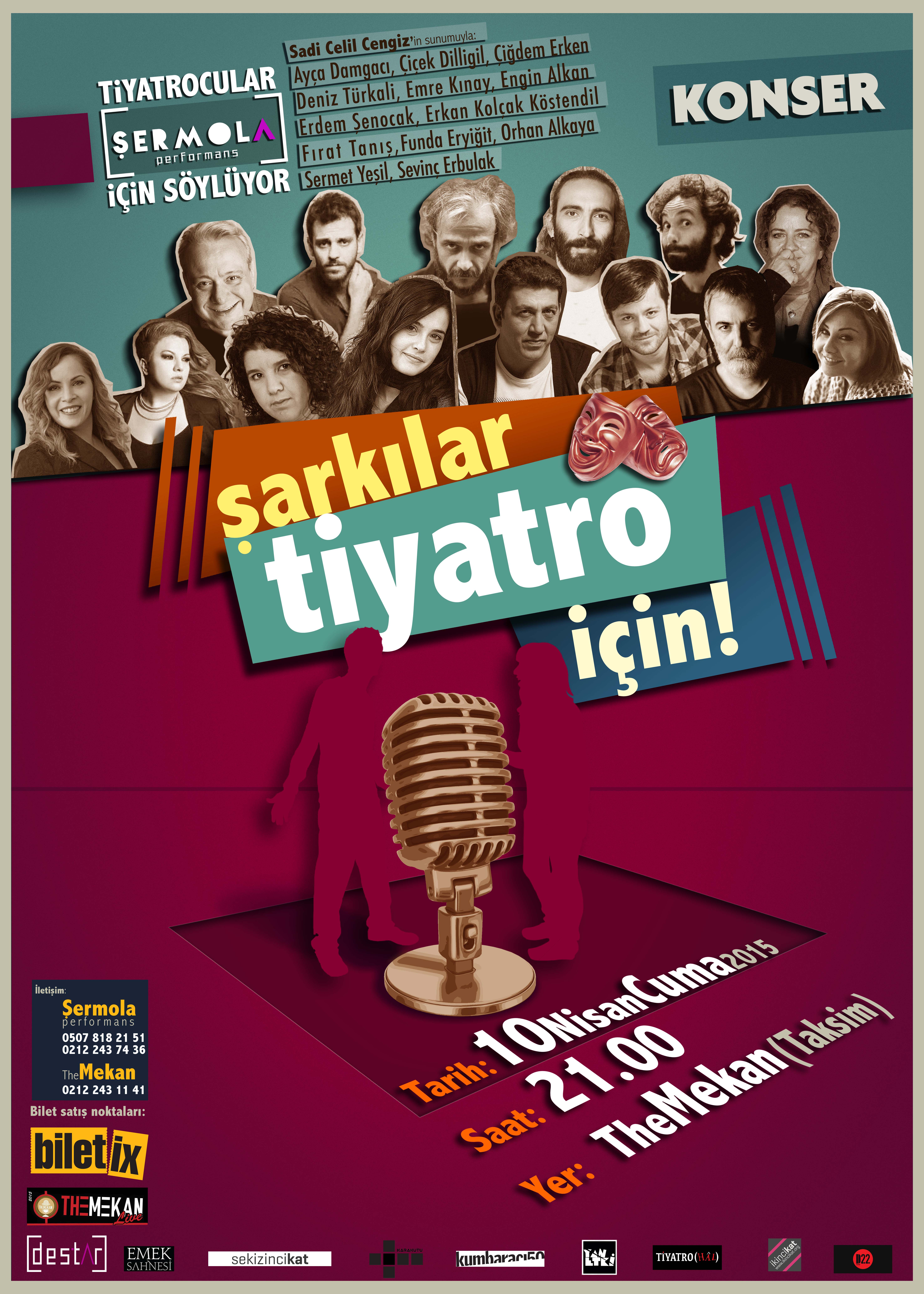 Gecenin solistleri; Ahmet Melih Yılmaz, Ayça Damgacı, Çiçek Dilligil, Çiğdem Erken, Deniz Türkali, Emre Kınay, Engin Alkan, Erdem Şenocak, Erkan Kolçak Köstendil, Fırat Tanış, Funda Eryiğit, Orhan Alkaya, Sermet Yeşil ve Sevinç Erbulak. 10 Nisan Cuma akşamı saat 21.00’de Taksim The Mekan’da gerçekleşecek konserin gelirleri Şermola Performans Sahnesi’ni ekonomik darboğazdan uzaklaştırmak için kullanılacak.