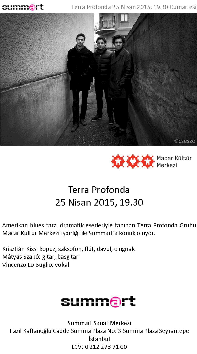 Amerikan blues tarzı dramatik eserleriyle tanınan Terra Profonda Grubu Macar Kültür Merkezi işbirliği ile Summart’a konuk oluyor.
