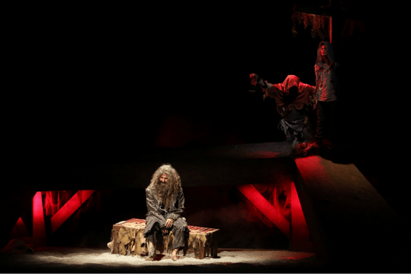 Jeanne D’arc’ın hayatını yazan Tsanev, bakire kızı celladı ve inandığı Tanrı’sıyla aynı zindanın içinde buluşturuyor. Konuda az sonra diri diri yakılacak olan genç kız gerçekten kahraman olan Jeanne mi yoksa o’ nu yerine geçmiş paralı fahişe mi? İkilem içinde çatışma yaratan olay zinciri ilk önce insanı şaşırtsa da, inandığı değerleri uğruna ölümü tercih eden bir insanın azmi, kötünün hiçbir zaman kazanamayacağını açıklıkla ortaya koymuş. Oyunu Yunus Emre Bozdoğan yönetirken sahnede Özlem Baykara Danacı, Sinan Demirer ve Hakkı Kuş rol alıyor. Yönetmenin fütürist algıyla eğildiği oyunda, sahne tasarımının bu algıyla birlikte oluşturulması, zindanın kumlar içinde tercih edilmesi çok iyi düşünülmüş. Yönetmenin izlediğim diğer yorumların etkisi altından kalmadan kendi özgün yönetim biçimini tercih etmesi gösterideki performansı zirveye taşıyan unsur. Karakterlerin oyuncularla doğru biçimde paralellik gösterdiğini belirteyim. Hakkı Kuş’ un ‘cellat’ rolünde sapık, çıkarcı, sistemin uşağı rolünü ironi dolu canlandırması ağır konudaki komedi olgusunu doğururken, ‘Tanrı’ rolünde Sinan Demirer sahnedeki ağırlığını ustalıkla konuşturmuş. ‘Zeus’ ve ‘Herkül’ arasındaki ‘baba-oğul’ durumu gibi, ‘Tanrı’ ile ‘İsa’ arasındaki ‘baba-oğul’ anlatısı Sinan Demirer’ in tok sesiyle seyirciyi duygu yüklü anlara sürüklüyor. Özlem Baykara Danacı için çok fazla parantez açmalı. İlk sahneden son sahneye kadar inandığı değerlerinden taviz vermeyen karakteri hem duygusal çatışmalarla hem de korkusuz bir yüreğin hazin haykırışıyla oynamış. Rolünün psikolojik unsurlarını dört dörtlük algılayan bir oyuncu var karşımızda. Danacı’ nın performansı gösterinin mihenk taşı!