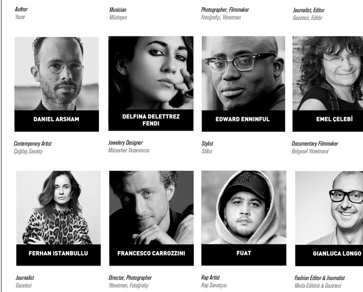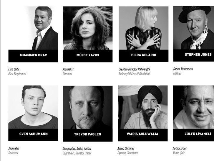 Past international participants have included Tilda Swinton, Gore Vidal, Zaha Hadid, Franca Sozzani, Reha Erdem, Terry Gilliam, Alphan Eşeli, Ryan McGinley, Kirsten Dunst, Marco Mueller, Sir Vs Naipaul, Özalp Birol, Gareth Pugh, Courtney Love, Dan Colen, Haider Ackermann, Ayşe Kulin, Michael Nyman, Taner Ceylan, Jefferson Hack, Sam Taylor-Wood, Andrew Dominik, Mario Sorrenti, Ferzan Özpetek ve Mark Romanek amongst many others.