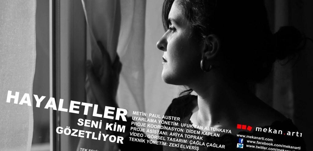 Mekan Artı’nın yeni tek seyircilik oyunu “Hayaletler – Seni Kim Gözetliyor” başlıyor. Paul Auster’ın New York Üçlemesi içinde yer alan aynı adlı öyküsünden uyarlanan “Hayaletler – Seni Kim Gözetliyor” bir dedektif hikayesi. İzleyen kim? İzlenen kim? İzleyen öykü anlatıcısı mı? Peşinde olduğu kişinin geçmişini araştırırken kendine, kendi geçmişine yönelmesi neden? Giderek izlediği kişinin hayatına gömülürken kendi hayatını keşfe çıkması; izleyen iken izlenen olması; bütün bunlar bir tuzak mı yoksa? Bilinçli olarak yapılan kötü bir şaka mı? Hayaletlerin aklını karıştırmak için ona oynadıkları bir oyun mu?