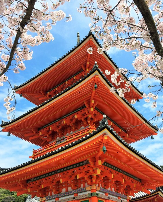 Kyoto’nun doğusundaki ormanlık tepelerin yamacında, şehre tepeden bakan Otowa çağlayanının üzerine kurulmuş Kiyomizu, gelesensel pagoda mimarisinde ahşap binalara, yüzlerece kiraz ağacı ve akağaca ev sahipliği yapan dev bir tapınak kompleksi. ev sahipliği yapıyor. Özellikle sakura ve koyo zamanı tapınağın bahçelerinde dolaşırken kiraz ağaçlarının çiçekleri veya akağaçların yaprakları arasından pagodaları seyretmek çok keyifli.