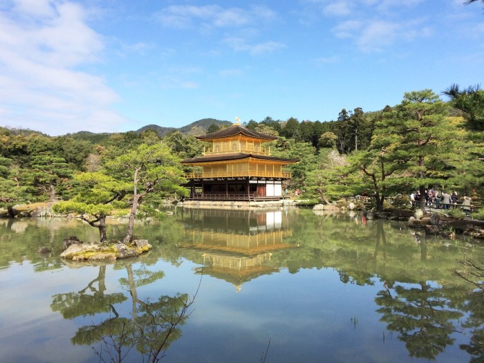 Kyoto şehrini çevreleyen tapınaklarının en görkemlisi kesinlikle Altın Tapınak. Mükemmel bir bahçenin içinde ufak bir göletin yanıbaşında tipik Japon Zen Budist tapınağı mimarisinde inşaa edilmiş iki katlı ahşap bina, altın yapraklar ile kaplanmış. Altın sarısı rengi güneşle birlikte iyice ortaya çıkan tapınağın hem kendisinin hem de durgun sudaki mükemmek yansımasının ışıltılı görüntüsü hafızanıza kazınıyor. Muromachi stili bahçe ister çiçekli bahar, ister yemyeşil yaz, ister yaprakdökümlü sonbahar, ister karlı kış günlerinde olsun, her mevsim sizi büyülecek masalsı bir kartpostal görünümü sunuyor. (Hergün 9:00 – 17:00 arası açık)
