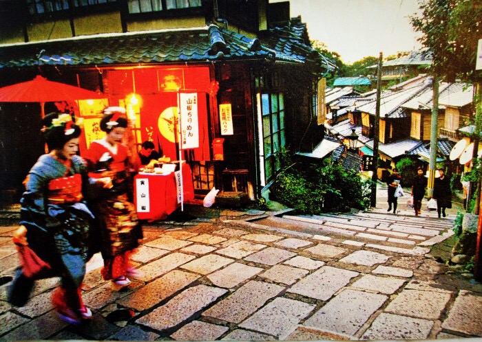 İki katlı otantik machiya ahşap evleri, şirin restoran ve dükkanları, geleneksel ochaya çay evleri ve de sokaklarında kimonolar ile dolaşan geiko (Kyoto’lular kıdemli geyşalara geiko diyor) ve yanlarında maiko (eğitim gören geyşalar)lara rastladığınızda gerçekten bir zaman tüneline girmiş gibi hissediyorsunuz kendinizi.