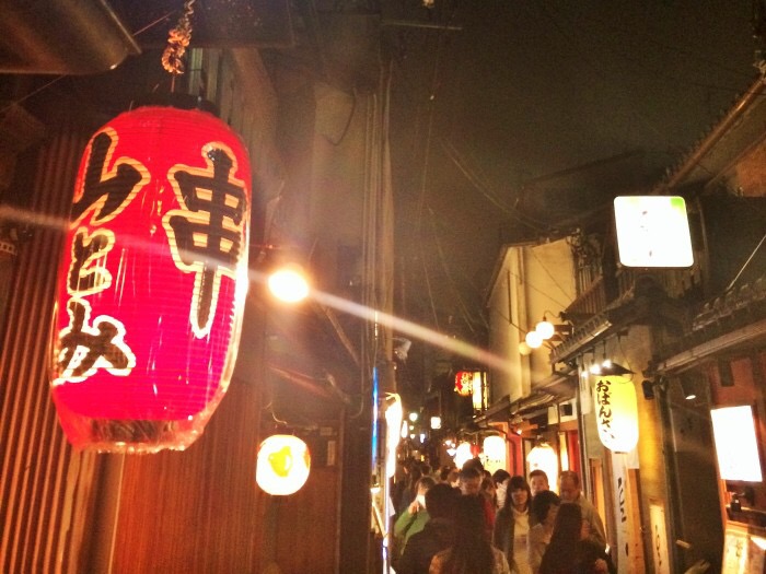 Yemek sonrası adres Kyoto’nun geceleri en canlı sokağı olan Pontocho. Kamogawa Nehrine paralel olarak Shijo-dori ve Sanjo-dori caddeleri arasında uzanan bu arnavutkaldırımlı daracık uzun sokak, japon folklorik dans ve müzik gösterisi olan kabuki tiyatrosunun doğduğu bölge.