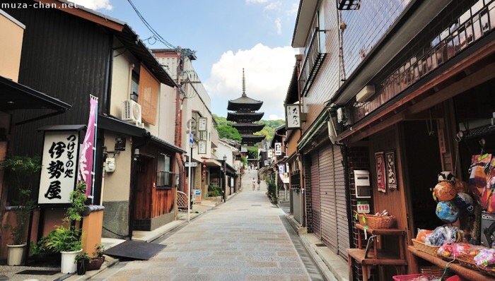 Kiyomizudera ile Yasaka arasındaki yamaçta yer alan daracık sokakların bulunduğu Higashiyama mahallesi Kyoto’nun en iyi korunmuş önemli bir tarihi bölgesi. Ahşap evleri, geleneksel dükkanları ile sizi zamanda geriye götürüyor. Daracık sokaklar Kiyomizu-yaki seramikleri, hediyelik eşyalar, çay evleri, tatlılar, turşular, kıyafetler satan dükkanlar ve tezgahlar ile dolu.
