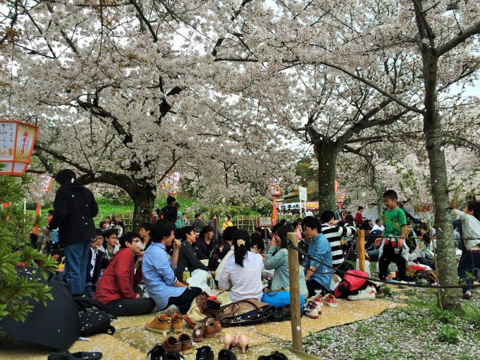 Japonların sakura zamanı Hanami isimli bir piknik geleneği var. Ailecek veya eş dost piknik örtülerini ve kumanyalarını kapıp ağaçların altına seriliyor ve saatlerce piknik yapıyor. Örtülerin yanıbaşında çıkarılmış ayakkabılar, mangalları yakan gençler, yemekleri hazırlayan kadınlar, çaylarını yudumlayan aile büyükleri, kitap okuyanlar, elele tutuşmuş aşıklar, rüzgarla uçuşup kar gibi yağan çiçek yapraklarının peşinden koşan çocuklar… gerçekten saatlerce keyifle izleyebilirsiniz.