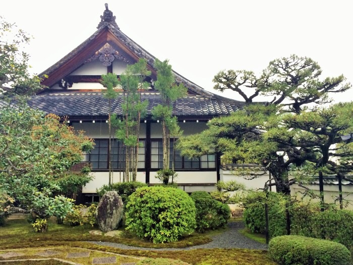 Tipik ahşap Zen mimarisi örneği olan binanın bahçelerindeki yosun bahçesi, köprüler, adacıklar ve kanallar ile bezenmiş gölet bahçesi ve kum Zen bahçesi görülmeye değer. Kum bahçesinin ortasında yine kumdan dev bir koni yer alıyor. (Her gün 8:30 – 17:00 arası açık)