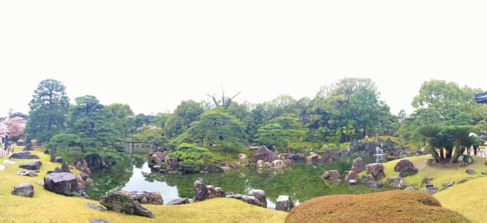 Ninomaru Sarayının çıkışında geleneksel Japon bahçesinin mükemmel bir örneği yer alıyor. Büyük bir göletin etrafındaki özel olarak oyulmuş taşlar ve budanmış çamlar, gezinti yapanların zihninde ‘perfect harmony’ yani mükemmel uyumu yaratmak ve onları sakinleştirerek meditasyon yapmalarını kolaylaştırmak için özenle tasarlanmış.