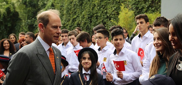 Prens Edward saat 14.00’de okula girişinde kendisini TBS Kurucusu ve Yönetim Kurulu Başkanı Mehmet Gültekin ile birlikte okul genel müdürü Janet Williams-İpek karşıladı.