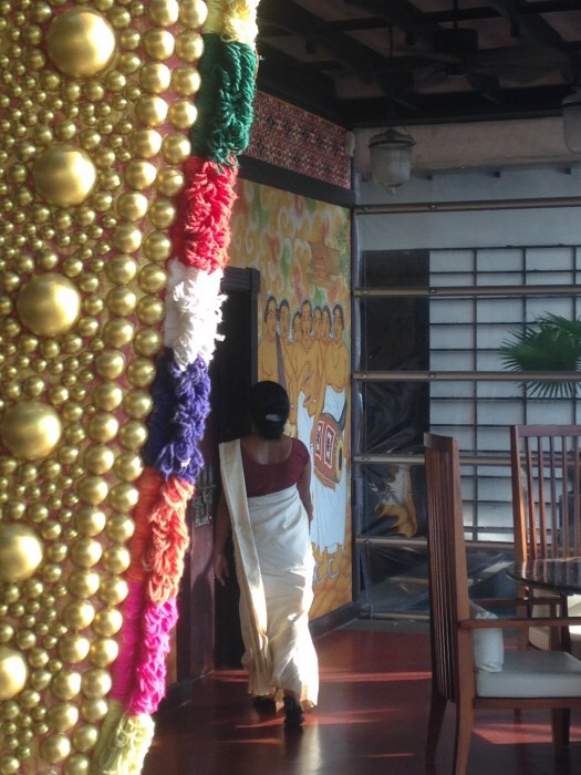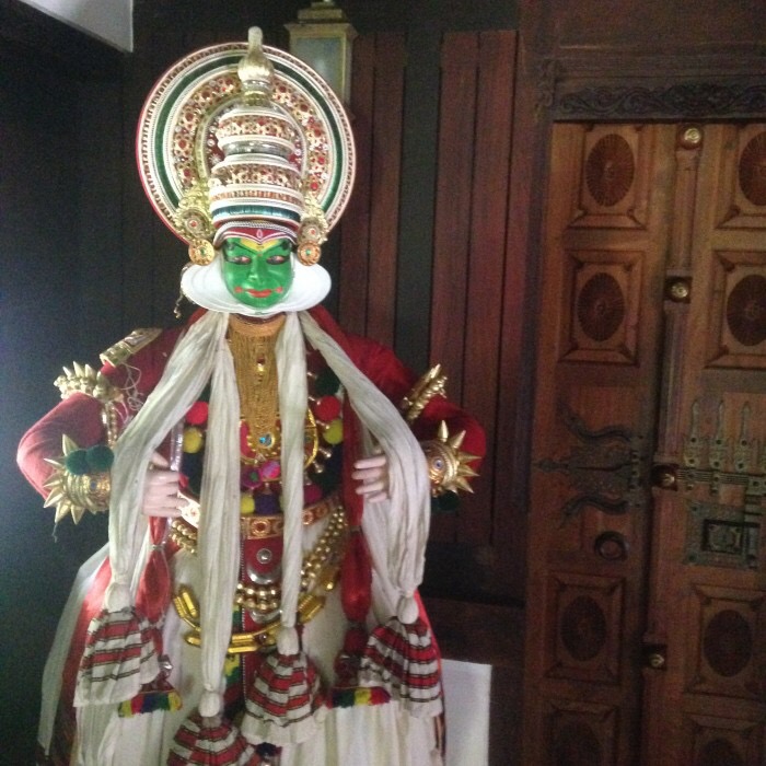 Otelin ‘Heritage’ odaları ise bir başka unutulmazlar listesi olmaya aday. Gerçek sanılacak kadar iyi yapılmış bir Kathakali dansçısı maketinin kapımda beklediği, 200 yıllık yer karolarının ve ahşap kapıların tipik bir Kerala evinden getirilerek odanın dekorasyonunda kullanıldığı, elektrik prizlerinin ve oda aydınlatmalarının otelin diğer odalarında olduğu gibi otomatik olmadığı, bunun yerine yine eski elektrik aksamının bu odaya taşınarak nostaljik prizlerin bulunduğu bana göre harika bir oda. İlk gece otelin büyük bir mutlulukla sunduğu bana fazla büyük gelen suit odayı pekala pek çok kişinin beğenebileceği bir oda olmasına karşın oldukça ruhsuz bulmuş, ikinci gece ise bu çok daha küçük ve karanlık odaya bir yanlış rezervasyon sebebi (ve sayesinde) geçince ‘işte bu’ diyorum. Çünkü geceyi bir müzede geçirmek kadar özel bir deneyim benim için.
