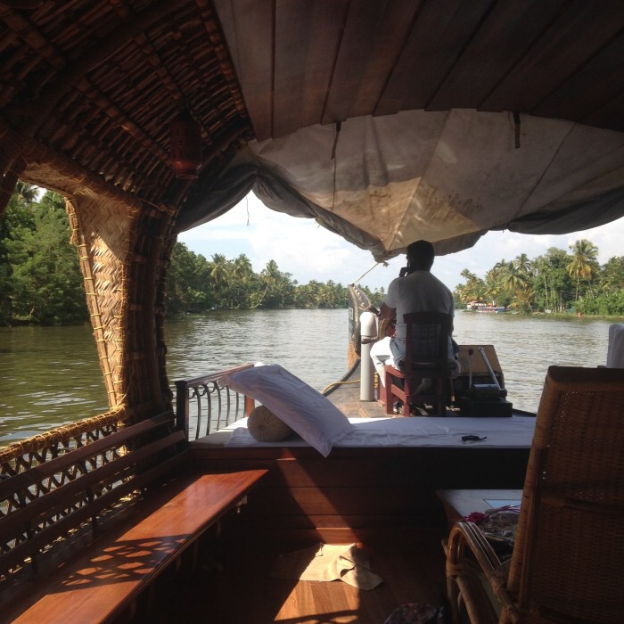 Yol böyle renkli olunca hiç sıkılmıyorum. Anil çoğu zaman diğer arabalara teğet geçiyor. Araba kullanmak Hindistan’da ayrı bir mesele. Onlar birbirini bir şekilde idare ediyor da bizler kullanmaya kalkışsak durum ne olur emin değilim. Öğle saatlerinde Allepey’e varıyoruz. Nehirde süzülen ya da kıyıya bağlı duran otantik tekneler görsel zenginlik. Lonely Planet’ın ‘must see / do’ ları arasında yer alan Kerala’da tekne turu ya da bu teknelerde konaklama deneyiminin son derece yerinde olduğunu nehirde geçirdiğim birkaç nefis saatin sonunda tam olarak anlıyorum. Buraya bir veya iki gece kalmak için tekrar gelmeyi çok isterim. Teknelerde wi-fi yok dolayısıyla biraz kendimizi de ‘off’ moda getirmek için harika.