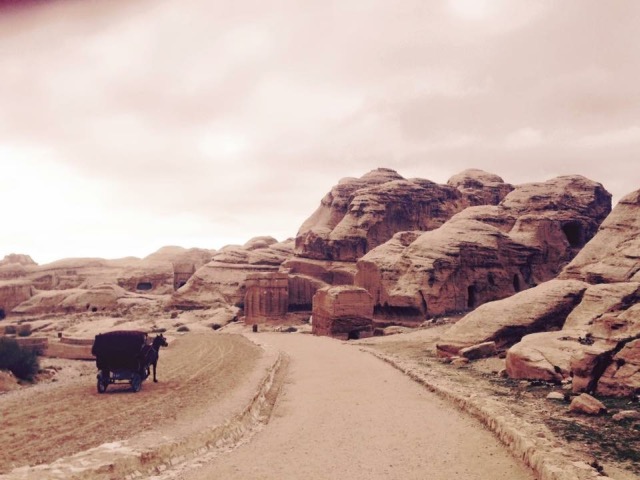 Başka bir gezegende olduğum duygusuyla, kızıl tonlarındaki devasa kayaların, bir daralıp bir genişleyen kanyonun arasında gerçeküstü bir hisle yürürken ve Mars’ta olduğuma neredeyse emin olduğum bir anda at nallarının sesleriyle arkama dönüyorum. Ürdünlü at arabacısı iki turisti taşıdığı arabayı son hız Petra’nın girişinde yer alan ve aniden karşınıza çıkan El-Hazne (Treasury)’e doğru hızla sürüyor.