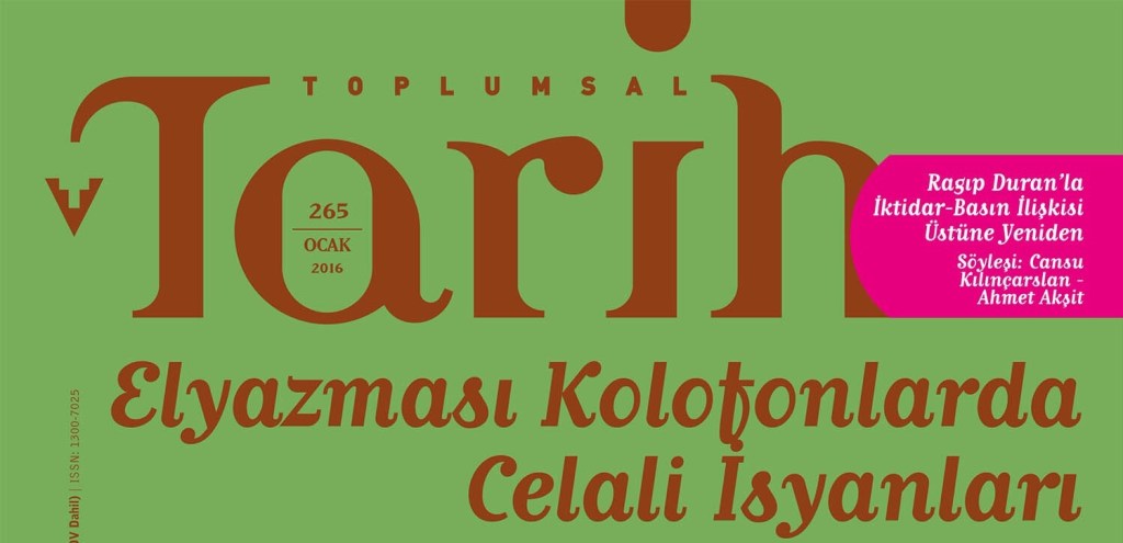 Toplumsal Tarih Ocak 2016 sayısında Henry Shapiro’nun “17. Yüzyıl Osmanlı-Ermeni Sosyal ve Entelektüel Tarihine Aralanan Yeni Bir Pencere: Ermenice Elyazması Kolofonlar” başlıklı yazısını kapağa taşıdı. Henry Sapiro, Ermeni rahiplerin yazdığı ve Türkçe tarih yazımında neredeyse hiç yararlanılmamış olan elyazması kolofonlardan örnekler sunuyor.