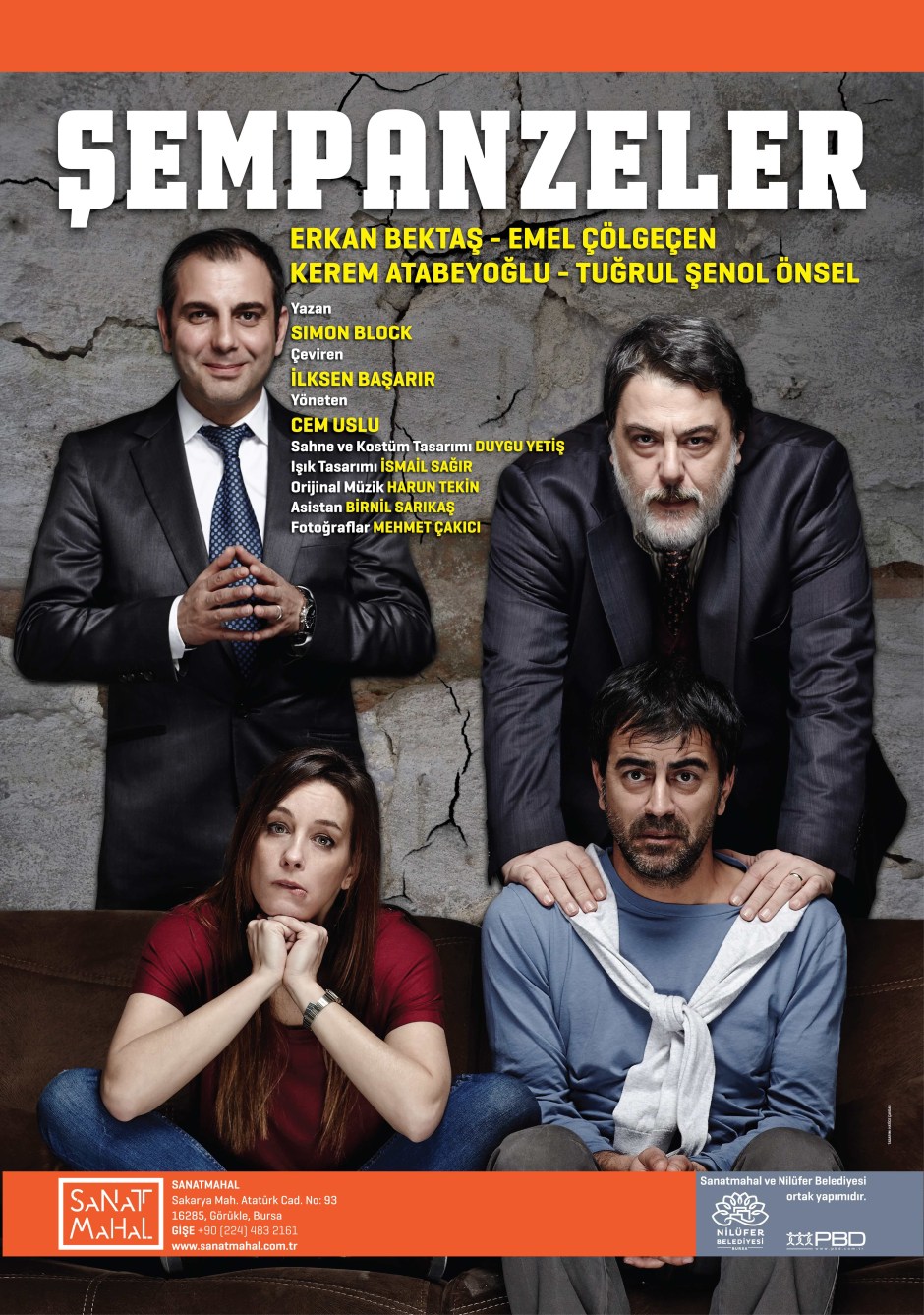 Geçtiğimiz Ekim ayında Bursa’da sanatseverlere kapılarını açan SanatMahal ilk oyunu Şempanzeler ile tiyatroseverlerin karşısına çıkmaya hazırlanıyor. Erkan Bektaş, Emel Çölgeçen, Kerem Atabeyoğlu ve Tuğrul Şenol Önsel’in rol aldığı oyunun yönetmenliğini oyuncu, yazar ve yönetmen Cem Uslu üstleniyor.