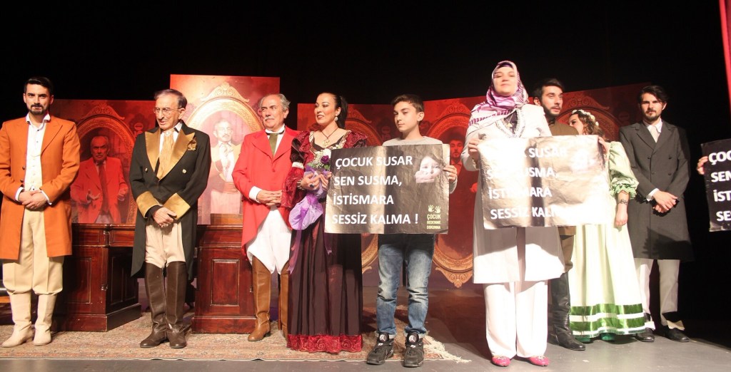 sahnesine taşıdığı “Müfettiş”in başta usta oyuncu Haldun Dormen, Hakan Altıner, Selda Özbek ve diğer önemli oyuncuları, “Çocuk susar, sen susma” projesiyle, çocuk istismarına hayır dedi!