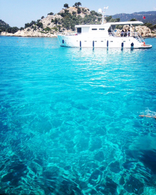 Tekne turu yapmak için Kaş merkezde sıralalanan teknecilere kalırsa çıkış noktası olarak Kaş’tan başlayan bir rota yapmak gerekiyor. Ancak bizdeki bilginin kaynağı sağlam:) Daha mantıklı ve iyi bir rota, teknenin seyrinin Üçağız’dan başladığı bir rota. Böylece teknenin 2-3 saatte alacağı yolu, karayoluyla 30-40 dakikada alıyor ve tekneye bindikten yarım saat sonra muhteşem Akvaryum Koyu‘nun turkuaz rengi sularının keyfini çıkarmaya başlıyorsunuz.