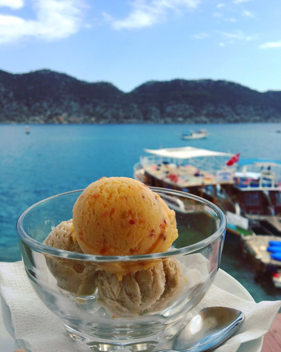 Gözüme kestirdiğim ve bir sonraki gelişimde mutlaka kalmak istediğim pansiyonun üzerinde yer alan dondurmacıda hayatımda yediğim en iyi ‘gerçek’ dondurmalardan birini yiyorum. Ev yapımı, hiç bir katkı maddesi ve süt olmayan sorbe ve dondurma arası nefis fındıklı, şeftalili, muzlu dondurma için buraya tekrar gelinir.