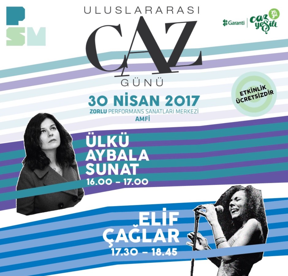 Zorlu Performans Sanatları Merkezi, 30 Nisan Pazar günü “Uluslararası Caz Günü”nde, Türkiye’nin, söz-müzik ve aranjmanlarının tamamını kendisi yapan ilk kadın caz vokalisti Elif Çağlar ve bir çok önemli caz projesinde adından söz ettiren Ülkü Aybala Sunat’ı ağırlıyor. PSM Amfi’de “Garanti Caz Yeşili” konserleri kapsamında gerçekleşecek olan performanslara müzikseverler ücretsiz olarak katılabilecek.