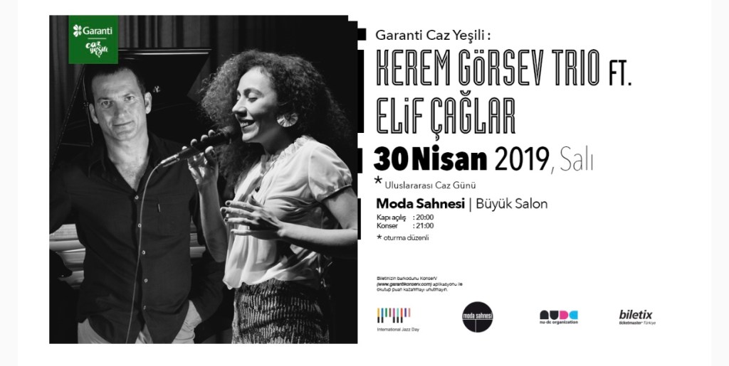 Garanti Caz Yeşili konserleri kapsamında, Kerem Görsev Trio ve Elif Çağlar, caz klasiklerini seslendirmek üzere, 30 Nisan Uluslararası Caz Günü’nde, Moda Sahnesi’nde bir araya geliyor.