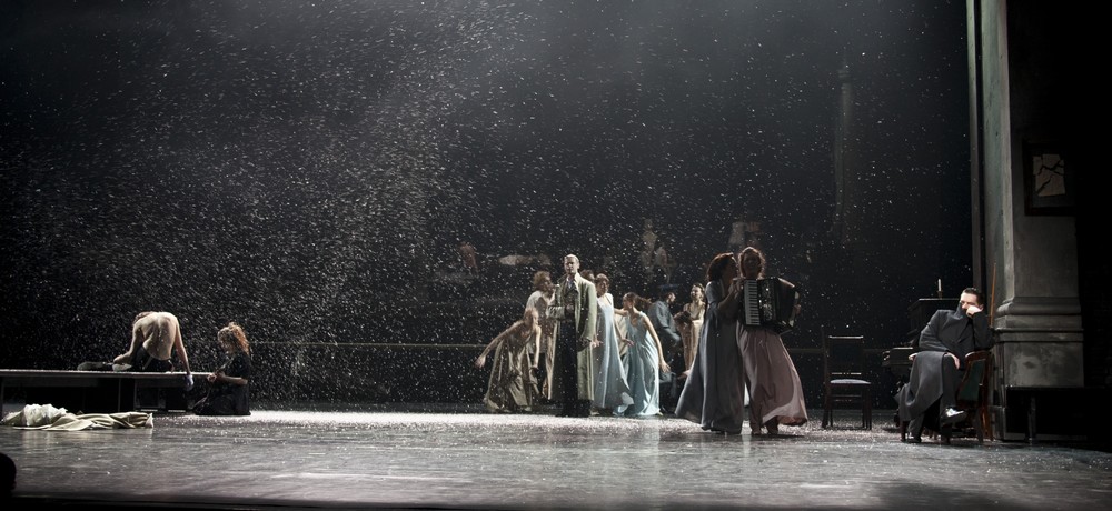 Golden Mask Rusya Sahne Sanatları Festivali ve İstanbul Tiyatro Festivali işbirliğiyle Türkiye’ye gelen Eugene Vakhtangov Theatre, Puşkin’ in muhteşem başyapıtı Yevgeni Onegin oyununu sahneledi. Oyunun sahneleme açısından başarısı özellikle oyuncuların karakter yaratımındaki gücünden geliyor. Sahnede oluşturulan tasarım ise ayrı bir büyü. Son derece kusursuz algıda, Rus coğrafyasındaki devrim öncesi yoksulluğu, soylu sınıfın kendinden aşağıda gördüğü insanları aşağılamasını keskin biçimde eleştiri yağmuruna tutan eser, Rimas Tuminas’ ın dahiyane fikriyle devasa biçimde sahnelendi. Burada özellikle sahnenin kullanımı bağlamında oyunun önemli olduğunu düşünüyorum. Enka Vakfı’ nın gösterim sponsoru olduğu eserin etkileyici görselliği ile dönemsel bir yolculuğa çıkmayı başardık.