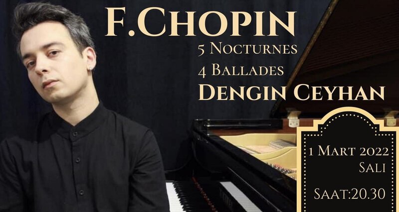 Klasik müziğin ve romantik dönemin en önemli bestecilerinden F. Chopin’in 212. Doğum yıldönümünde, ünlü piyanist Dengin Ceyhan Nocturne’ler ve Ballade’larından oluşan bir repertuar ile bu anlamlı günü kutluyor.