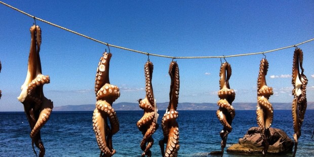 Ve de günü Molyvos limanında ahtapotları ile ünlü Octopus restorandaki akşam yemeği ve Barbayanis uzo keyfi (Midilli’e üretilen, bizim en çok beğendiğimiz uzo Barbaynis, Plomari uzo’sunu da beğenen çok var, ancak bizim favori Barbayanis). Bira isteyenler efsanevi Mythos birasını, güzel bir şarap içmek isteyenler ise gurme bir arkadaşım tarafından tavsiye eden Lazaridis (Cabernet Sauvignon – Merlot) şarabını tadabilir.