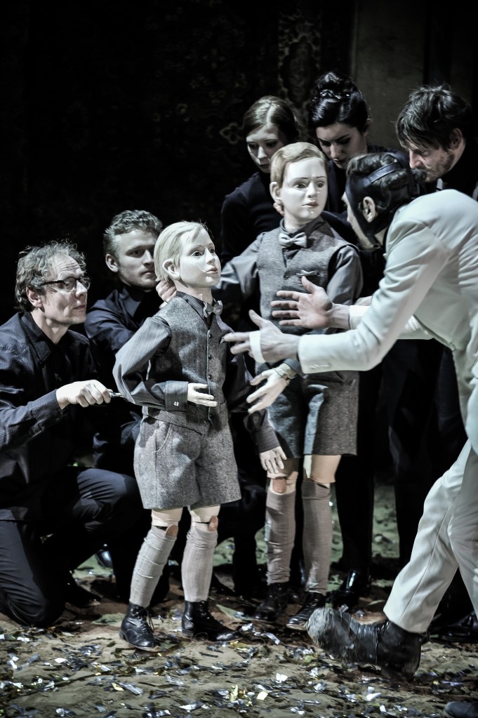 Ostermeier, Richard’ın argümanına her adımda gizlice yardımcı oluyor. Margaret rolünde cinsiyeti belli olmayan bir adamı oynatarak, onunla ilgili her şey performatif hale geliyor; Richard’ın ölüme göndermeyi umduğu iki genç prensi kuklalara dönüştürerek eylemlerini daha az kötü gösteriyor. Richard’ın çocukları idam etme kararını izlemek zorunda kalmıyoruz; o sadece tahta oyuncakları idam ediyor. Ölümlerin çoğunu sahne dışında tutan yönetmen, Richard’ın zaferlerine katılmamızı, ödüllerin tadını çıkarmamızı ve sonuçları görmezden gelmemizi kolaylaştırıyor.