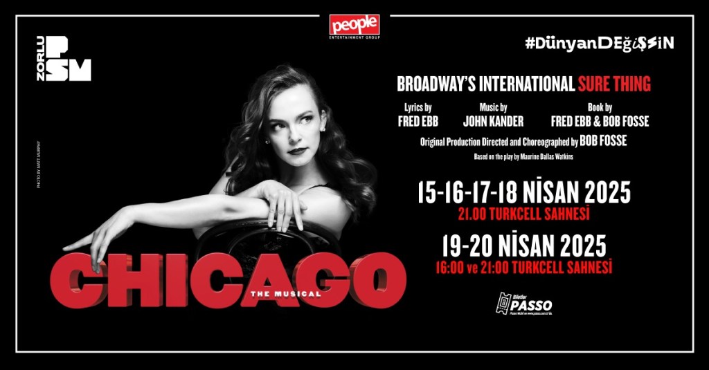 Broadway’in En Uzun Süre Sahnelene Müzikali “Chicago” Zorlu PSM’de! John Kander’ın müzikleri, Fred Ebb’in şarkı sözleri ve Bob Fosse’un ikonik dokunuşuyla Broadway’in en uzun soluklu müzikali “Chicago”, 15-20 Nisan tarihleri arasında Zorlu PSM’de izleyiciyle buluşuyor. Avrupa turnesi kapsamında İstanbul’a gelecek olan bu unutulmaz prodüksiyon, West End ve Broadway’in en seçkin isimlerinden oluşan kadrosuyla sahne alacak. 1920’lerin ışıltılı dünyasına bir yolculuk vadeden “Chicago”, suç, tutku ve şöhret dolu hikayesiyle seyircilere büyüleyici bir deneyim sunacak.