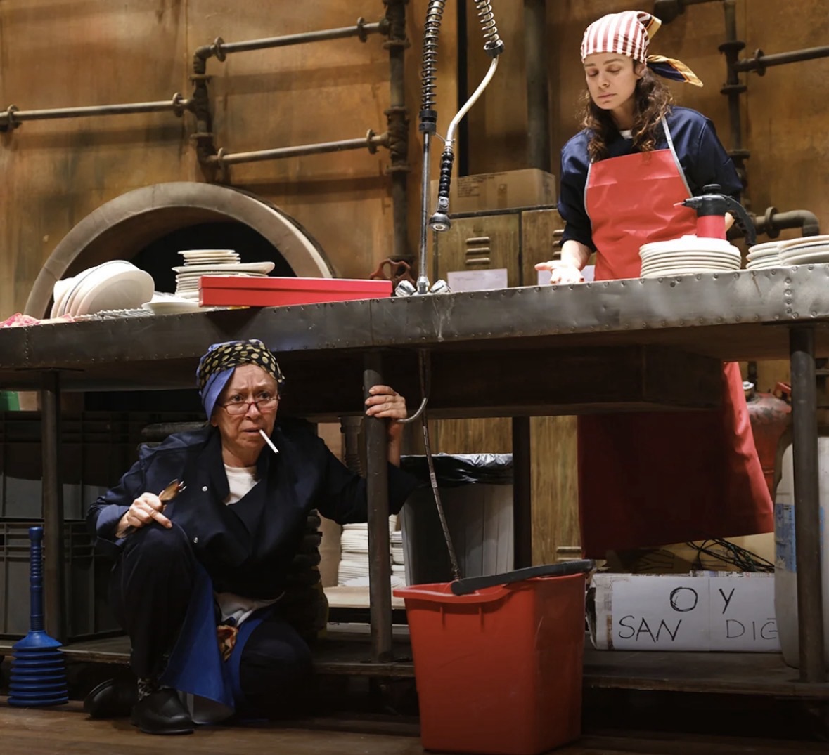 Oyuncular, bu yapının temel taşı ve ruhu; her biri karakterinin derinliklerini ustalıkla ortaya koyarak ensemble’ı zirveye taşımış. Özge Özpirinçci, Dressler rolünde etkileyici bir performans sergiliyip: Otuz yıllık mutfak deneyimiyle şekillenmiş huysuzluğu, kırılgan bir iç monologla dengeliyor ve seyirciyi suçluluk duygusuyla sarıyor. Özpirinçci’nin ses tonu –hafif çatallı, yılların yorgunluğunu taşıyan– ve beden dili (titrek ellerle duvarı itişi, ani patlamaları), rolü varoluşsal bir trajediye dönüştürmüş; son sahnedeki sessiz çöküşü, salonu derin bir sessizliğe büründürüyor. Ahsen Eroğlu’nun Monique’i, naif bir asi’lik sunmuş: Fiziksel çevikliği –dansvari tabak fırlatmaları, köpük sıçratmaları– absürt mizahı zirveye taşıyor; gözlerindeki masum öfke, oyunun isyan damarını besleyen unsur. Şebnem Sönmez, deneyimli bir bulaşıkçı olarak alaycı bir mesafe koruyor; repliklerinin keskinliği ironiyi güçlendirmiş, ancak bazı sahnelerde duygusal derinlik metnin sınırlarında kalıyor –beden dili bu açığı kapatıp rolünü doğru bir psikoloji ile seyirciye aktarmış. Ekin Eryılmaz, dördüncü karakterde sessiz bir patlayıcı olarak parlıyor: Minimalist oyunculuğu –göz teması ve duruşuyla– “görünmez” olmanın acısını haykırıyor; reji asistanı olarak sahne arkasındaki emeği de temsil eden duruşu önemli. Dörtlü, Kasapoğlu’nun yönlendirmesiyle kusursuz bir kolektif ritim yakalayıp; bireysel anlar kadar grup sahneleri –köpük savaşları, duvar arkası fısıltıları– trajikomik dokuyu harikulade şekillendiriyor. Fiziksel talepler yoğun; oyuncular ter ve enerjiyle sonuna kadar direnerek, emek temasını ironik bir şekilde somutlaştırmaları ise muhteşem!