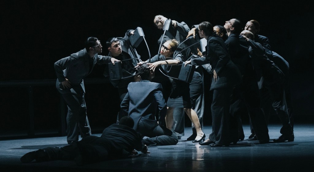 Morau, Avrupa dans sahnesinin en yenilikçi seslerinden biri. Katedral onun imzasını taşıyan bir başyapıt: Sahne, geometrik kostümler ve keskin ışık oyunlarıyla bir inşaat alanına dönüşüyor. On iki dansçı –genç, çevik bedenler– Arvo Pärt’in Fratres, Spiegel im Spiegel gibi eserlerinin titreşen tekniği eşliğinde, taş bloklar gibi diziliyor, eriyor, yeniden şekilleniyor. Bedenler, katedrallerin gotik kemerleri gibi birbirine yaslanıyor; bireysel titreşimler kolektif bir yapıya evriliyor. Bu, bir diriliş hikayesi: Karanlık bir boşluktan –belki pandemi sonrası bir izolasyon, belki iklim krizinin gölgesinde bir manevi çöl– yükselen bir umut mimarisi. Morau’nun estetiği, sinema ve görsel sanatları dansa katman katman örüyor; Stanley Kubrick’in 2001: Bir Uzay Destanı filmini andıran retro-fütürist unsurlar, izleyiciyi kozmik bir yalnızlıktan toplu bir dua ritüeline taşıyor. Işık ve gölgenin sessizliğinde bedenler, ruhun mimarisini inşa ediyor.