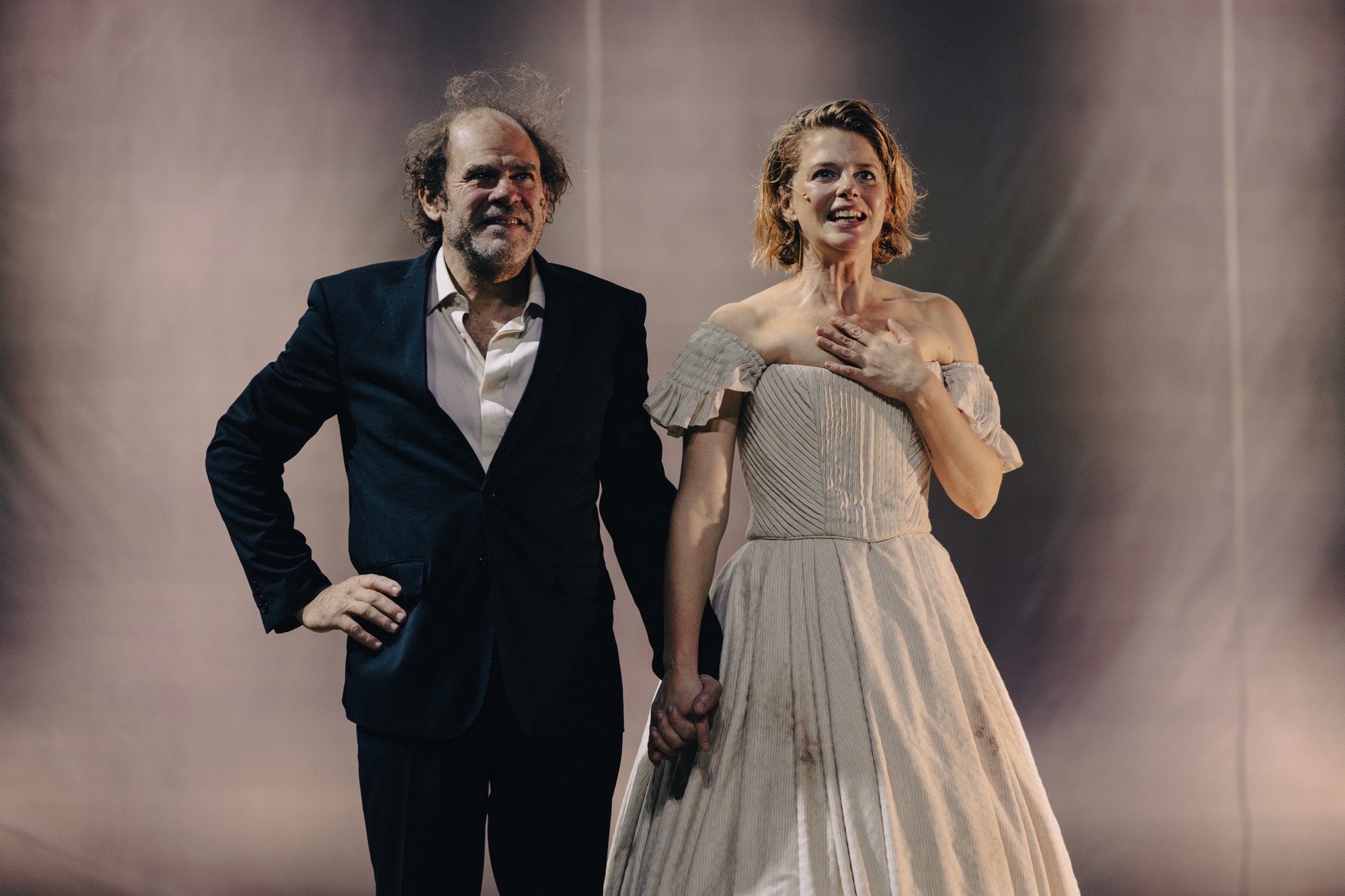 Oyunculuk, bu minimalist çerçevenin en parlak yıldızı. Maaike Neuville’in Emma’sı, bir fırtına gibi: Gözlerindeki o açlık, sesindeki o kırılgan öfke, izleyiciyi Emma’nın ruhunun derinliklerine çekiyor. Neuville, Emma’yı ne bir kurban ne de bir asi olarak çiziyor; o, bastırılmış arzularının esiri bir kadın, ama aynı zamanda kendi zehrini yudumlayan bir savaşçı. Koen De Sutter’in Charles’ı ise muazzam bir kontrast: Sıradan, iyi niyetli ama kör bir adam – Emma’nın hayallerini besleyemeyen, ama onu yargılamayan bir figür. İkili arasındaki sahneler, sessiz gerilimle dolu; bir bakış, bir dokunuş, evliliğin boğucu rutinini öyle ustalıkla yansıtıyor ki, alkışlar arasında izleyicinin içindeki suçluluk duygusu yankılanıyor. Ana Naqe’nin yan rollerdeki dokunuşları ise, Emma’nın etrafındaki erkek dünyasını –doktor, âşık, toplum– tek bir gölge gibi özetliyor. Bu üçlü, oyunu sırtlıyor; fazla oyuncu yok, fazla diyalog yok, ama her jest bir roman sayfası kadar dolu.